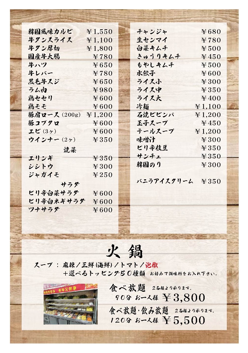 | 国産牛黒毛牛ロース | ¥1,100/人 |